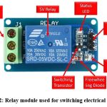 This automatic switch is commonly employed in automatic control circuits to regulate high currents with a low-current signal. The relay signal’s input voltage ranges from 0 to 5 volts. The ranges vary as the area covered by the irrigation for the farming. Which controls the DC pump Fig 2.