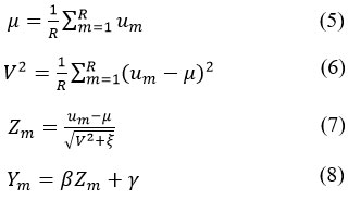 Where, uni(T) is the activation value of the T neurons’ output, Pni is the pooling layer’s output, and L is the pooling layer’s size. The batch normalization (BN) layer is used to address deep network training issues that could result in gradient explosion or dispersed gradients. As a normalized approach, it is suggested. The BN is calculated as follows: