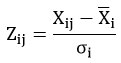 Xi is the mean value, σi is the standard deviation of the indicator