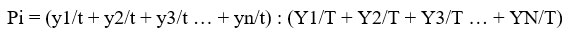 Where; Pi=Agricultural Productivity Index. y= Yield of the 1 to nthth crops at the block level. t= Area under crops 1 to nth at the block level. Y= Yield of the 1 to nth crops at the district level. T= total area of the crops 1 to nth at the district level.