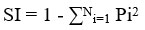 Its value also lies between 0 and 1. SI is a measure of diversification and is measured as SI=1−HI.