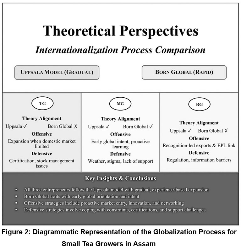 This case study analysis examines the entrepreneurial journeys of three STGs in Assam by integrating empirical findings with established theories of entrepreneurship, agripreneurship, and internationalization. The discussion demonstrates how individual agency, family embeddedness, learning orientation, and structural constraints collectively shape global entrepreneurial outcomes in a rural agribusiness context.
