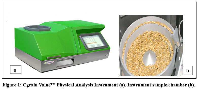 Figure 1: Cgrain Value™ Physical Analysis Instrument (a), Instrument sample chamber (b). |